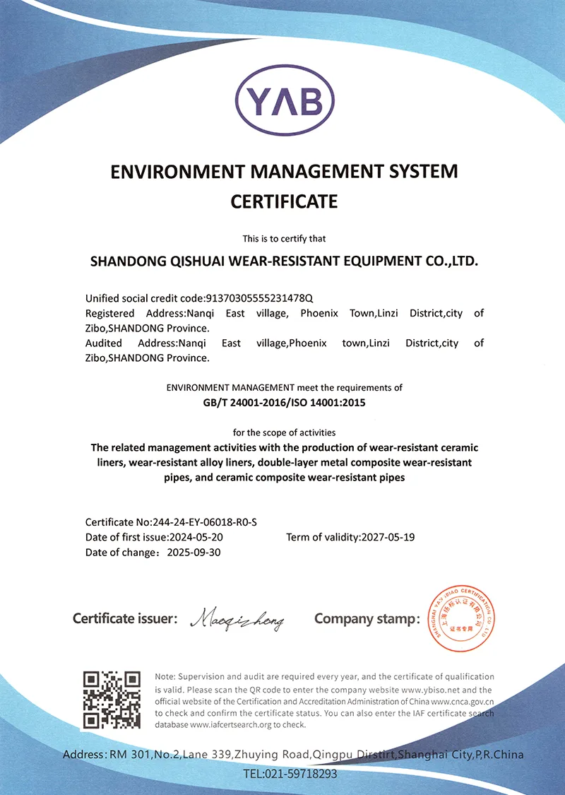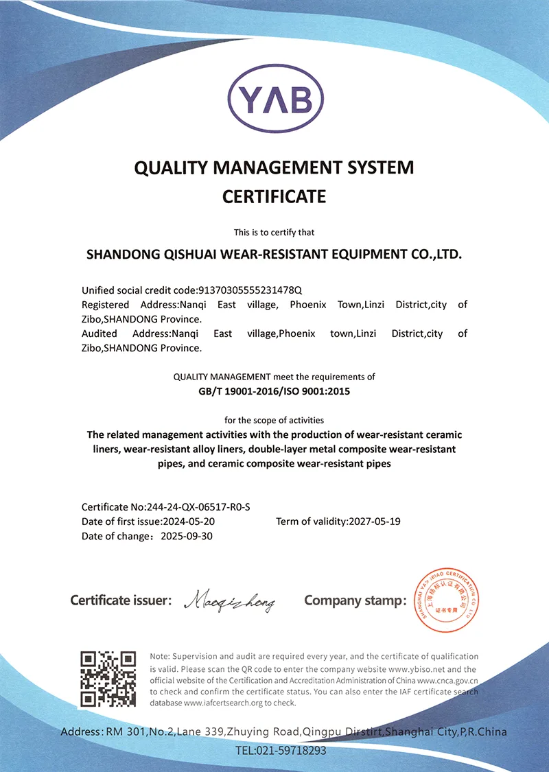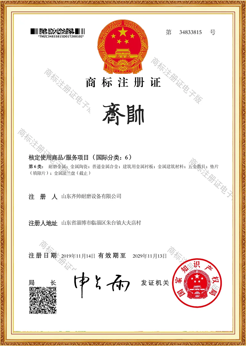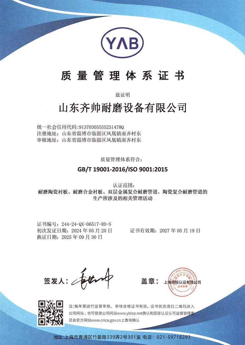 అంతేకాకుండా, మేము నిరంతరం మా స్వంత స్థాయిని మెరుగుపరుస్తాము మరియు చురుకుగా ఆవిష్కరణలను నిర్వహిస్తాము. కంపెనీ మేధో సంపత్తి హక్కులతో దుస్తులు-నిరోధక పదార్థాలు మరియు సాంకేతికతల శ్రేణిని అభివృద్ధి చేసింది మరియు వినియోగదారుల నుండి మంచి మూల్యాంకనాలను పొందింది మరియు గొప్ప రాబడిని కూడా పొందింది. మేము ఎల్లప్పుడూ అధిక దుస్తులు నిరోధకత మరియు సుదీర్ఘ సేవా జీవితం యొక్క డిజైన్ భావనకు కట్టుబడి ఉంటాము. మేము మొదట క్రోమియం కార్బైడ్ మిశ్రమం మరియు అధిక సాంద్రత కలిగిన అల్యూమినా సిరామిక్ వంటి అధిక-పనితీరు గల పదార్థాలను ఎంచుకుంటాము. డిజైన్ సూత్రాలు: సరిపోలే పని పరిస్థితులు, అధిక పనితీరు, భద్రత మరియు విశ్వసనీయత. క్రుప్ పరిష్కరించలేని ప్రపంచ సమస్య మీకు ఉంటే, క్విషుయ్కి రండి!