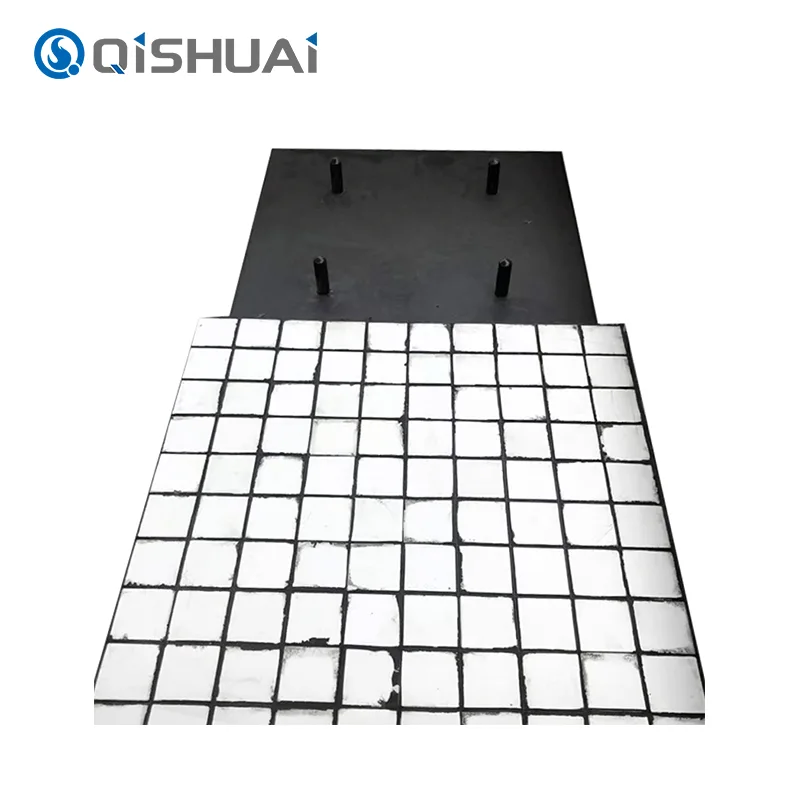 థర్మల్ వల్కనైజేషన్ ద్వారా, సిరామిక్, రబ్బరు మరియు స్టీల్ ప్లేట్లు దృఢమైన సమీకృత నిర్మాణాన్ని ఏర్పరచడానికి గట్టిగా బంధించబడతాయి. ప్రతి సిరామిక్ టైల్ దిగువ స్టీల్ ప్లేట్లోకి చొచ్చుకుపోయే బోల్ట్లను కలిగి ఉంటుంది మరియు సురక్షితంగా వెల్డింగ్ చేయబడింది, ఉపయోగంలో ఎటువంటి సిరామిక్ డిటాచ్మెంట్ జరగదని నిర్ధారిస్తుంది.