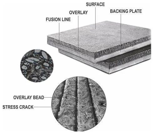 క్రోమియం కార్బైడ్ ఓవర్లే ప్లేట్ అనేది వేర్-రెసిస్టెన్స్ కంపెనీగా అత్యధిక పనితీరుతో కూడిన ప్రధాన ఉత్పత్తి- షాన్డాంగ్ క్విషుయ్ వేర్-రెసిస్టెంట్ ఎక్విప్మెంట్ కో., లిమిటెడ్. ఇది తక్కువ కార్బన్ స్టీల్ సబ్స్ట్రేట్ మరియు దాని ఉపరితలంపై క్రోమియం కార్బైడ్ వేర్-రెసిస్టెన్స్ కోటింగ్తో అనుసంధానించబడింది, ఇది అధునాతన ఓవర్లే వెల్డింగ్ టెక్నాలజీతో పూత చేయబడింది. ఉత్పత్తి ఉపరితలం యొక్క దృఢత్వం మరియు నిర్మాణ రక్షణ మరియు క్రోమియం కార్బైడ్ పూత యొక్క అత్యంత దుస్తులు-నిరోధకతను మిళితం చేస్తుంది.