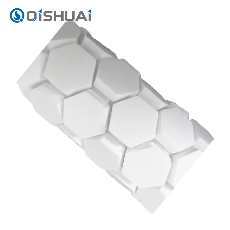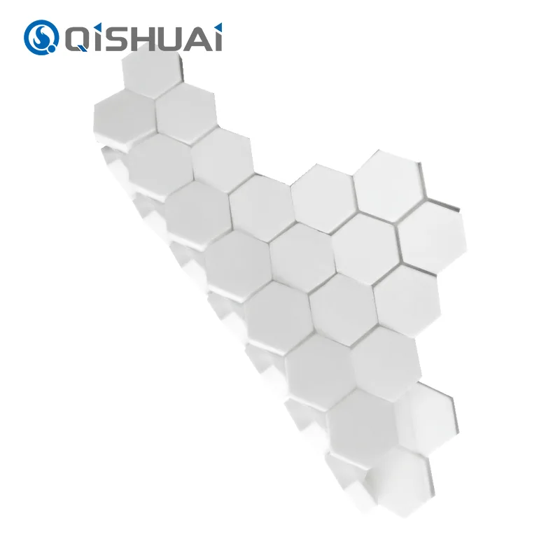 Shandong Qishuai Wear-Resistant Equipment Co., Ltd. యొక్క అధిక-నాణ్యత హెక్స్ అల్యూమినా సిరామిక్ మొజాయిక్, ఉదహరించబడినట్లుగా, సాధారణ చతురస్రం లేదా వృత్తాకార పలకల నుండి వేరుగా ఉండే విలక్షణమైన షట్కోణ డిజైన్ను కలిగి ఉంది. ప్రతి షట్కోణ అల్యూమినా సిరామిక్ మొజాయిక్ టైల్ మృదువైన, ప్రవహించే అంచులతో సున్నితమైన వివరాలతో స్పష్టంగా కనిపిస్తుంది.