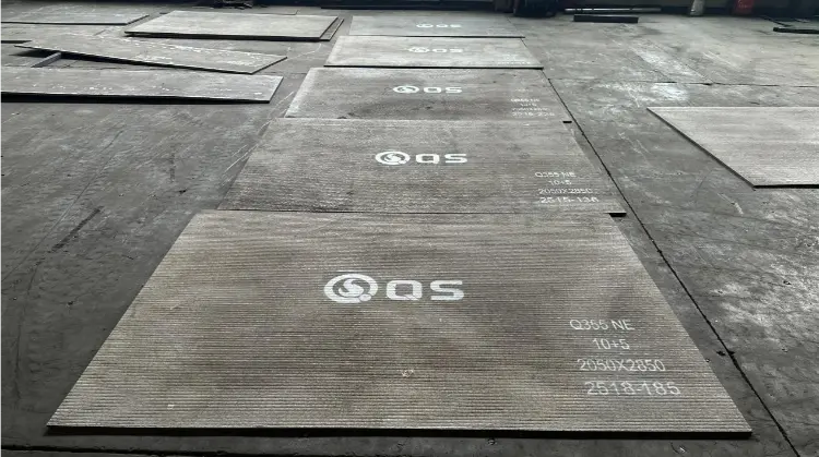 (3) క్రోమియం కార్బైడ్ ఓవర్లే ప్లేట్లు: షాన్డాంగ్ క్విషుయ్ క్లాడ్ వేర్-రెసిస్టెంట్ ప్లేట్లు ప్రధానంగా క్రోమియం కార్బైడ్ అల్లాయ్-క్లాడ్ ప్లేట్లు. క్లాడింగ్ ప్రక్రియను ఉపయోగించి, క్రోమియం కార్బైడ్ హార్డ్ రేణువుల అధిక సాంద్రత కలిగిన దుస్తులు-నిరోధక మిశ్రమం ఒకటి లేదా అంతకంటే ఎక్కువ పొరలు Q235 వంటి మధ్యస్థ నుండి తక్కువ కార్బన్ స్టీల్ ప్లేట్ల ఉపరితలంపై వర్తించబడతాయి. మిశ్రమం యొక్క దుస్తులు నిరోధకతతో ఉక్కు ప్లేట్ల యొక్క మొండితనాన్ని కలపడం, ఈ ప్లేట్లు నేరుగా కత్తిరించబడతాయి మరియు వెల్డింగ్ చేయబడతాయి, ఇవి విస్తృత శ్రేణి సంక్లిష్ట సంస్థాపన దృశ్యాలకు అనుకూలంగా ఉంటాయి.