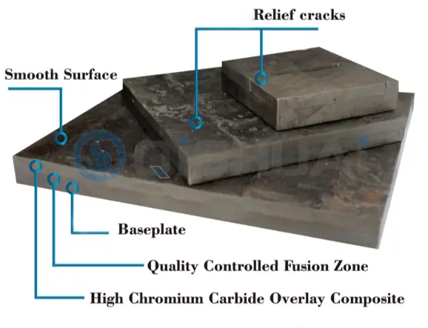• వేర్-రెసిస్టెంట్ లేయర్ యొక్క ముఖ్య లక్షణాలు: అధిక-కాఠిన్యం కార్బైడ్లు, అద్భుతమైన రాపిడి దుస్తులు నిరోధకతతో సమృద్ధిగా ఉంటాయి.